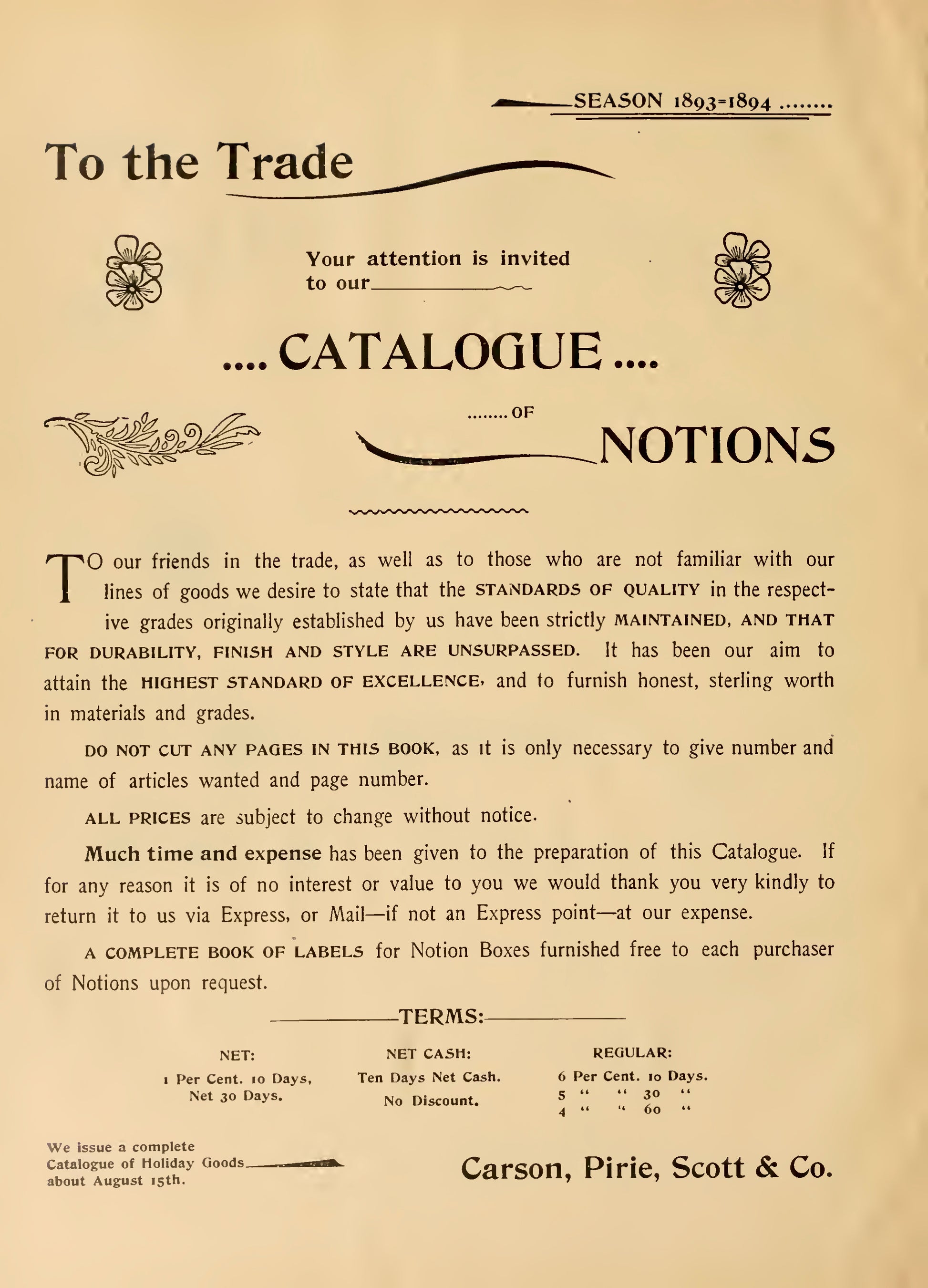 Carson Pirie Scott Illustrated Catalogue of Staple and Fancy Notions 1893