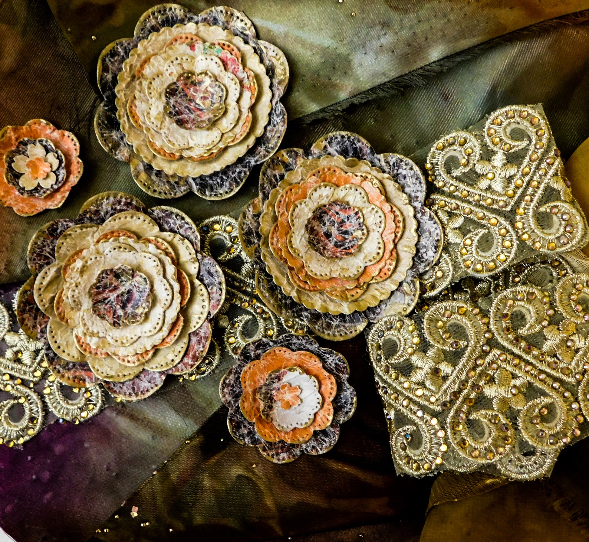 A beautiful curated collection of items inspired by my momigami flowers created with an old magazine and coffee dyed papers. This collection includes both handmade and curated items, fabric, papers, trim, ribbon, beads, feathers and assorted ephemera. Not all items shown in photos.