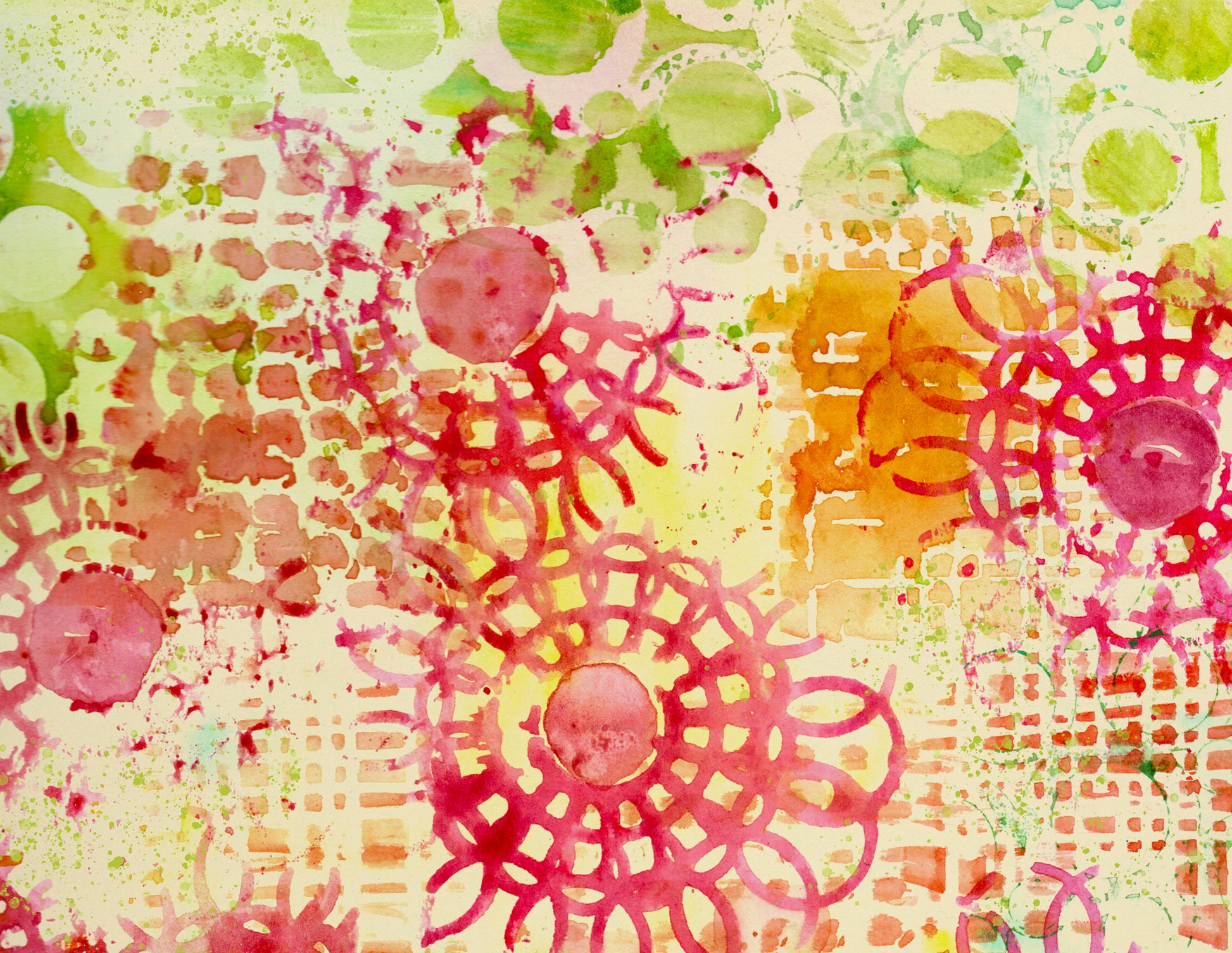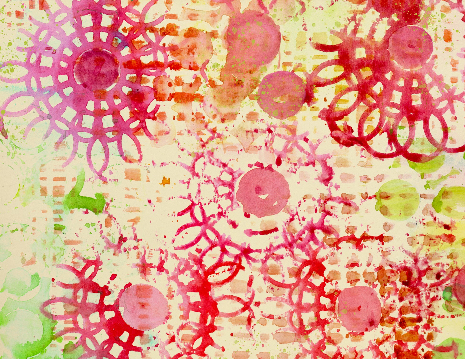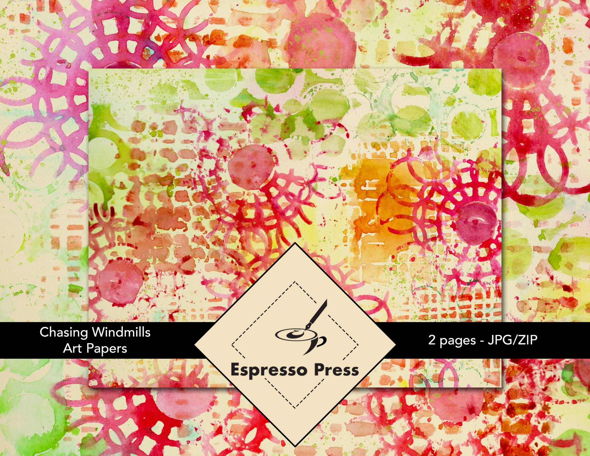 Handmade art paper collection. Abstract watercolor stencil printing and stencil work. 2 digital pages for journals, keepsake books, paper crafts, cards and more. 8.5"x11". Landscape format. Press quality 300 DPI. JPG/ZIP About 15MB.